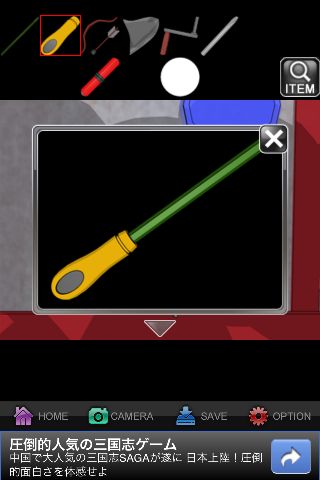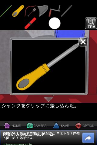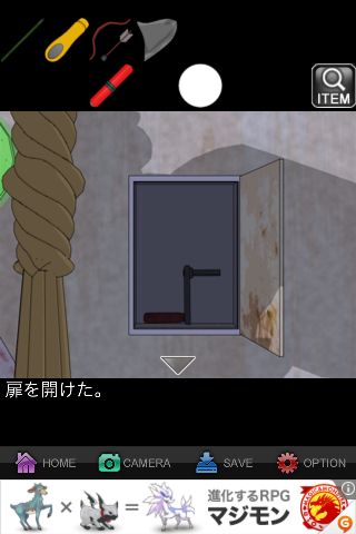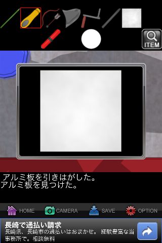 右の壁に「ドライバー」を使って「アルミ板」を入手。