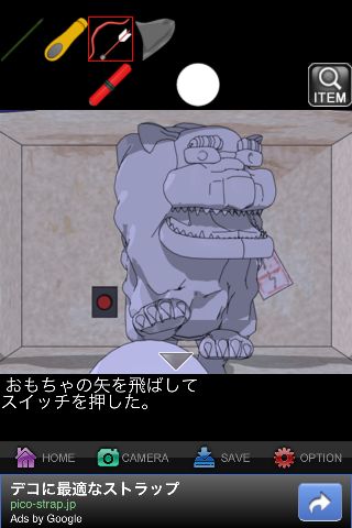 「彫像の耳」を取り付けて、「おもちゃの弓」で奥のスイッチを押す。