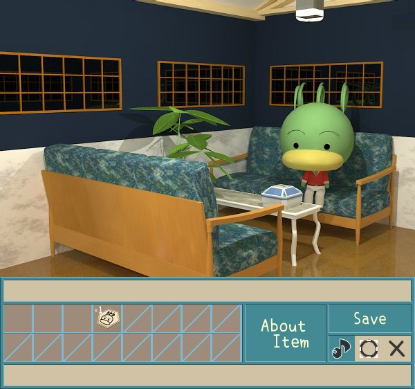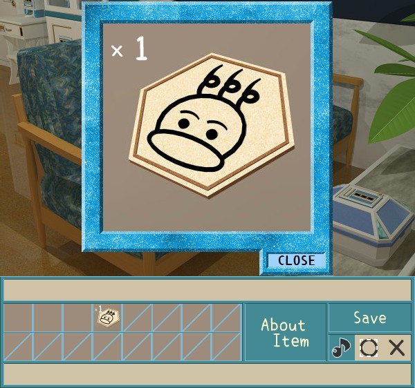 手前のソファーを調べて、「カモーニのプレート」を入手。