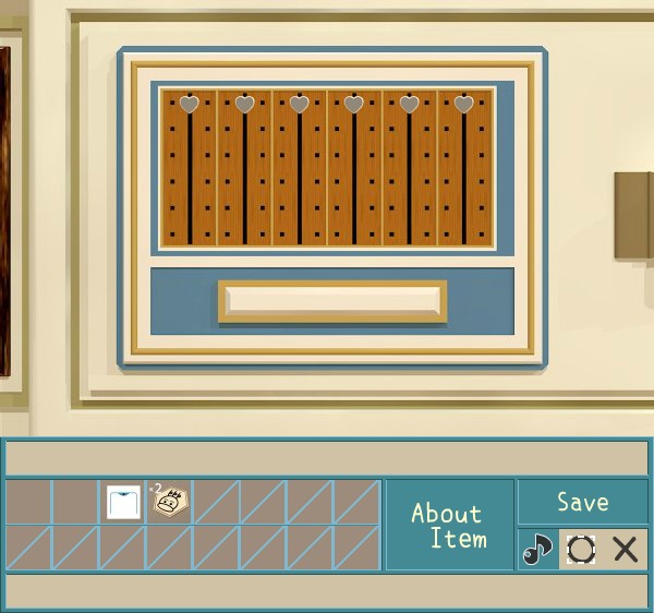 左に移動して、左の棚の上のハートのオブジェを拡大。