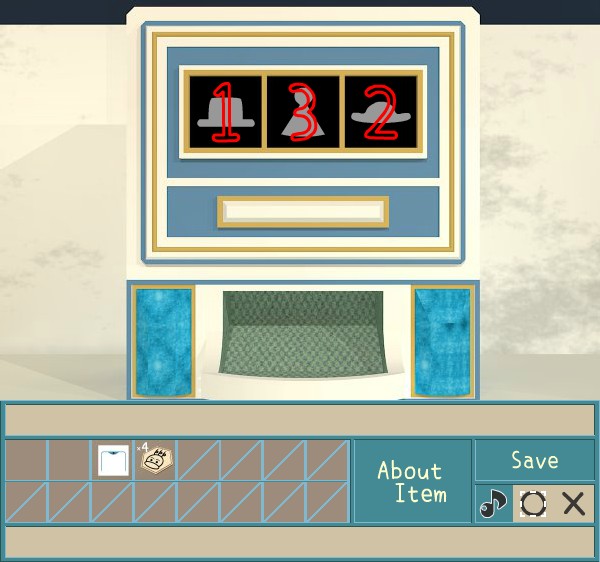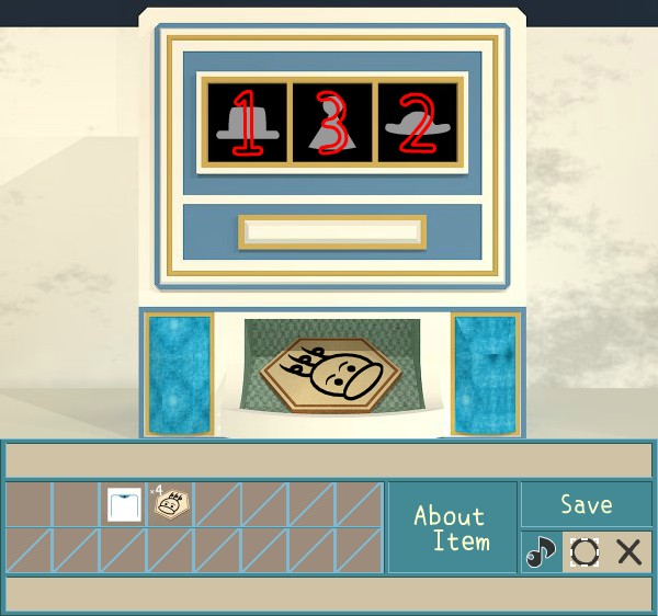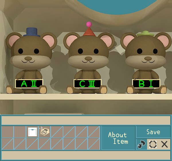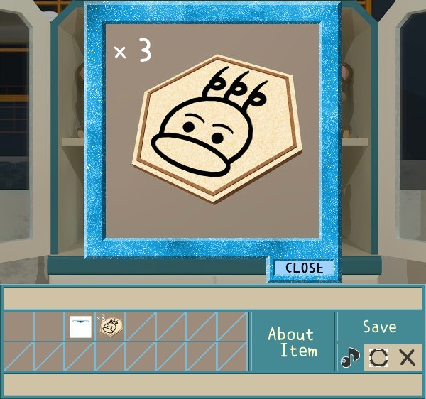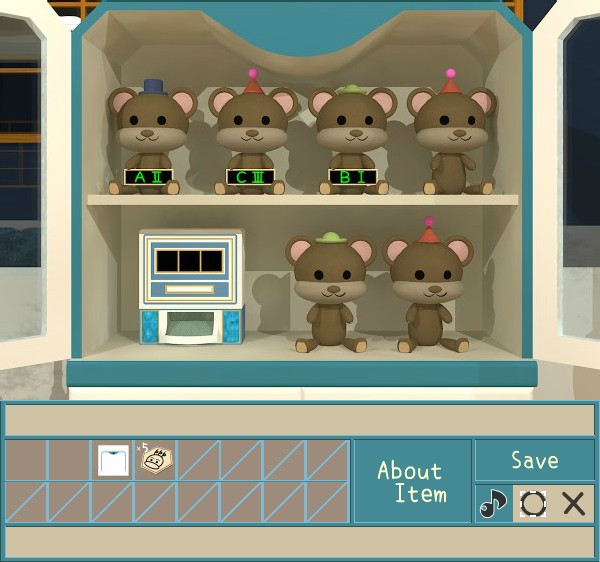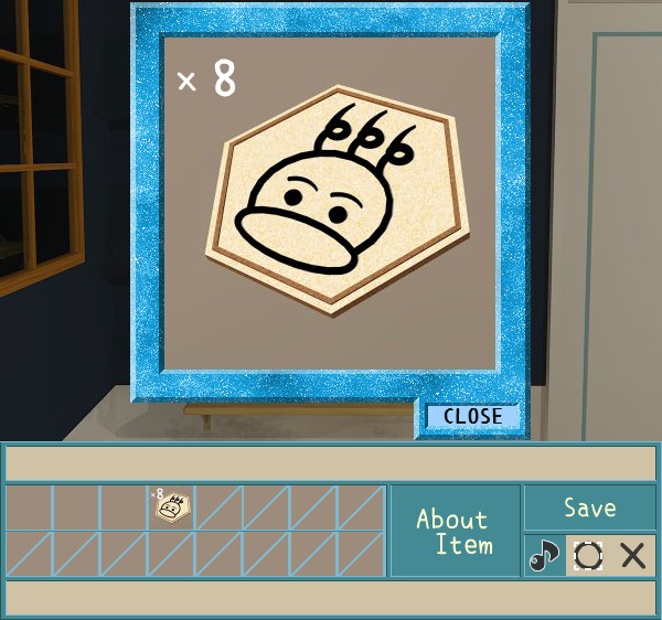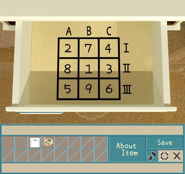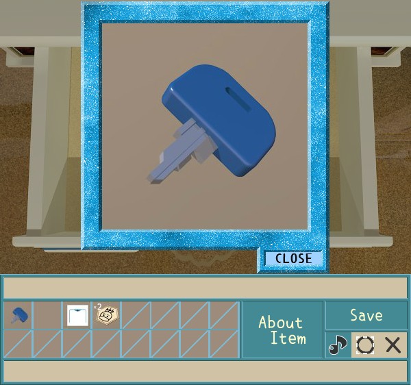 「青いカギ」を入手して、右の棚のガラス扉を拡大。