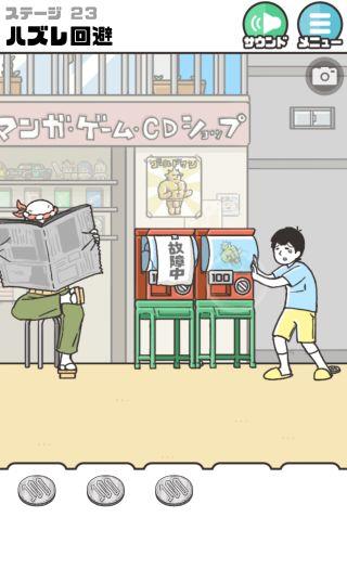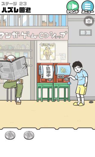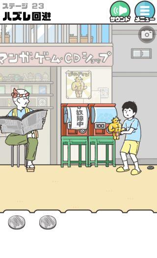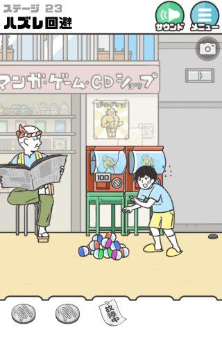 ステージ23で、おじさんが見ていない時にガチャガチャを揺らす。
