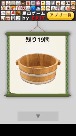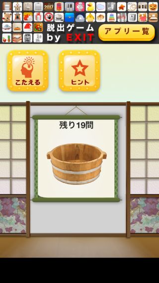 脱出ゲーム SHOUJI 無料 0 評価する 送信する KOJI SIMADA 1問目(残り19問) 『空の桶=カラオケ』となる。 『カラオケ』に合わせる。 1問目(残り19問) 2問目(残り18問) 3問目(残り17問) 4問目(残り16問) 5問目(残り15問) 6問目(残り14問) 7問目(残り13問) 8問目(残り12問) 9問目(残り11問) 10問目(残り10問) 11問目(残り9問) 12問目(残り8問) 13問目(残り7問) 14問目(残り6問) 15問目(残り5問) 16問目(残り4問) 17問目(残り3問) 18問目(残り2問) 19問目(残り1問)