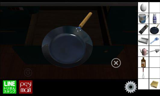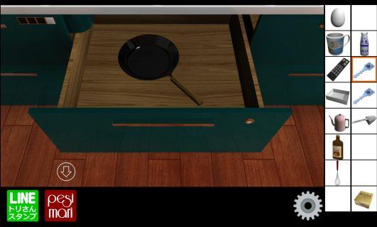 「クローバーのカギ」で開けて、「フライパン」を入手。