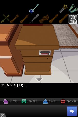 右の棚の真ん中の引き出しに、星型の「カギ」を使う。