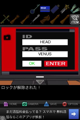 IDは「カード」に書かれている『HEAD』、PASSは『VENUS』を入力。