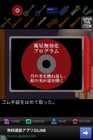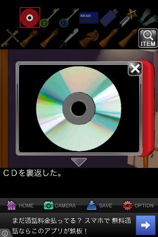 「ゴム手袋」で「CD」を入手して、裏返す。