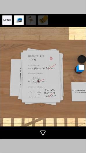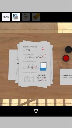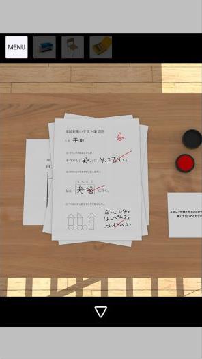 教壇の上を拡大して、右の朱肉に「消しゴム」を使う。