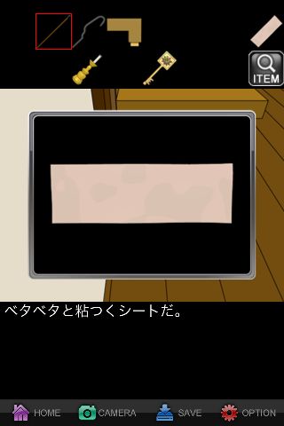 左側面から裏を覗いて「棒」で「粘着シート」を入手。
