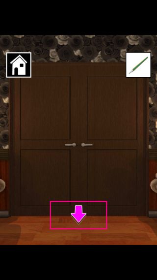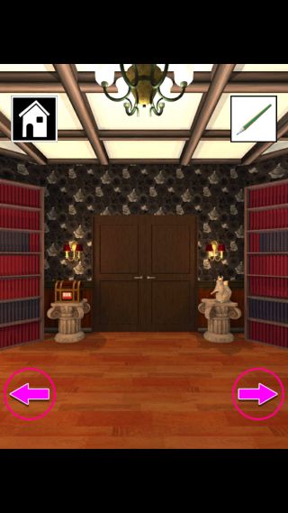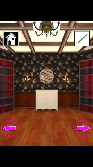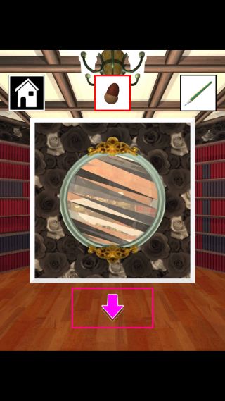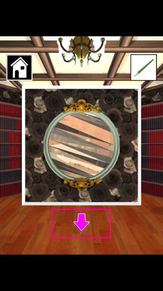 鏡の中の部屋の扉の前に移動して、右の像を拡大。