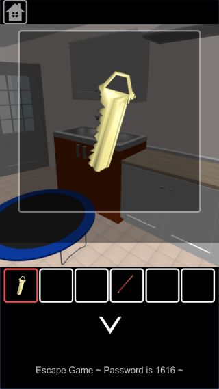 曲げた「ハンガー」を棚の上に使って、「金のカギ」を入手。