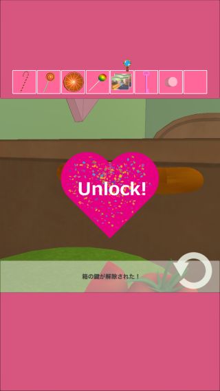 反対側に移動して、ランプから「棒付きキャンディー」を入手。