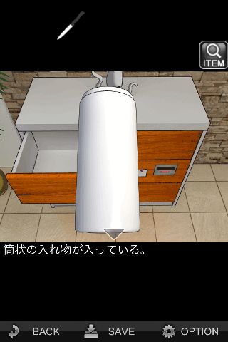 左上の引き出しを開けて、筒状の入れ物を取り出す。
