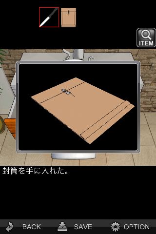 「ナイフ」で穴を開けて「封筒」を入手。