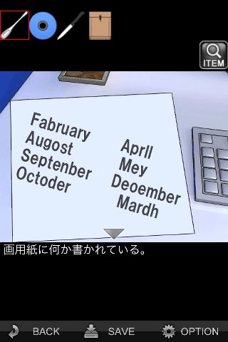 左側の机に置かれたメモを確認。先ほどの置き物の『足の数』で順番にすると『8→10→4』となり、このメモの月に当てはめる。