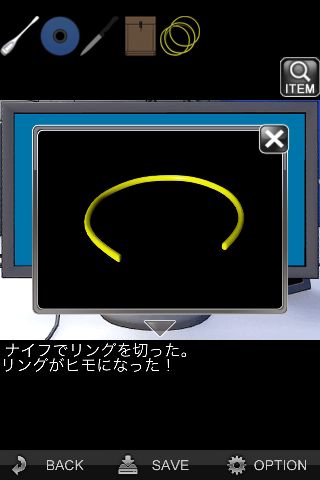 「リング」を「ナイフ」で切って「ヒモ」にする。