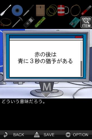 「電池」を入れてラジオを聞いて現在の時刻を確認、「電池」を回収する。(グッドエンドへのフラグ)