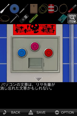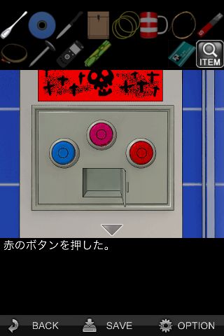 続いて青のボタンを押すと装置が壊れる。