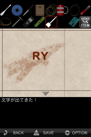 床の汚れを「ヘラ」で落として『RY』の文字を確認。