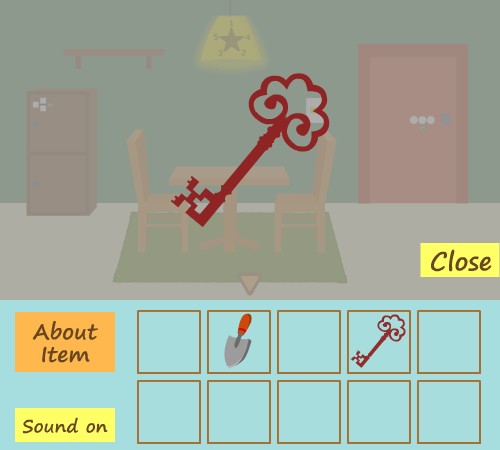 「スコップ」で掘って、箱に「カギ」を使う。