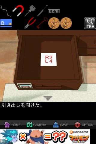 最初にカーペットをめくって出てきた暗号と組み合わせると『右5左7』となる。