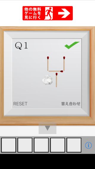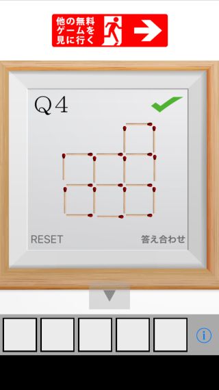右の額を拡大して、左下の縦のマッチ棒を右上へ。
