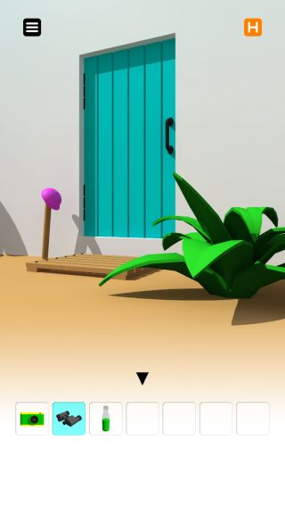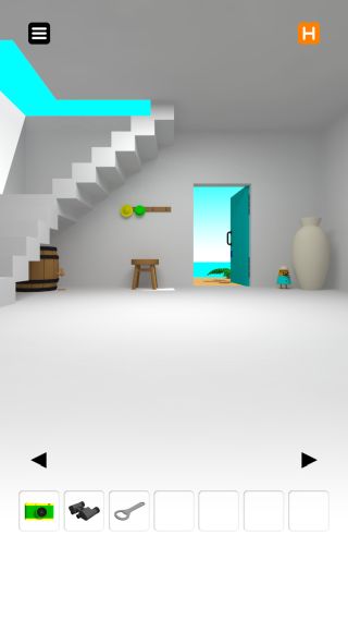 左奥に「双眼鏡」を使って、数字の順で『緑、紫、灰、黄』を確認。