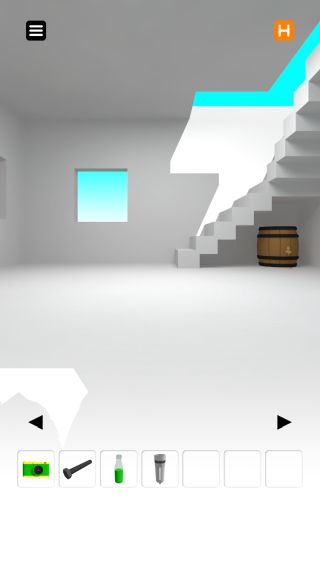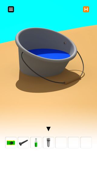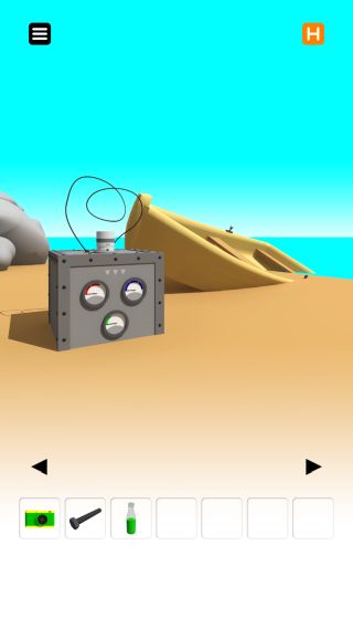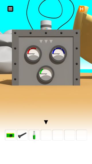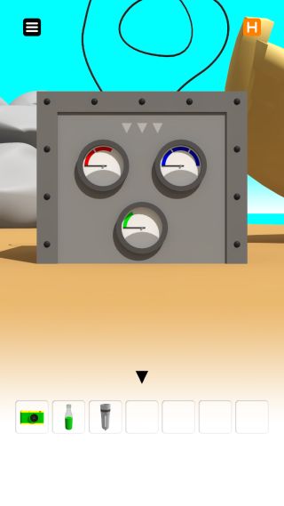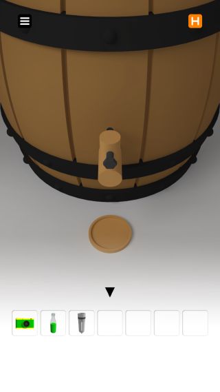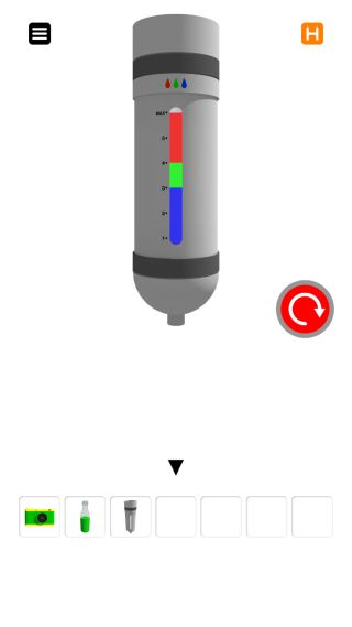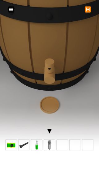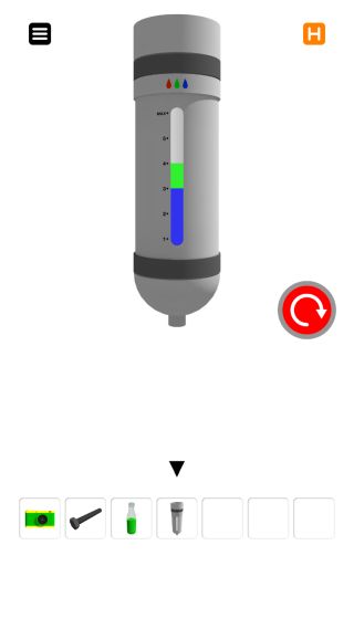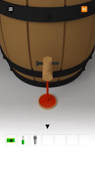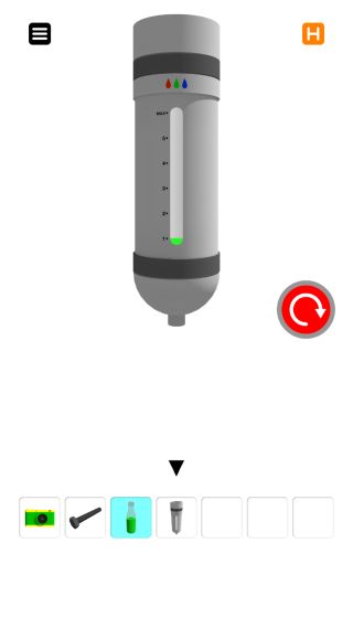 機械の上から「筒」を入手して、「ビン」の緑の液体を1回入れる。
