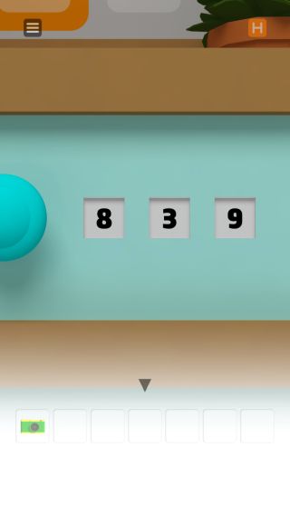 『紫、黄、水色』を上下で繋げると、数字の『839』となる。