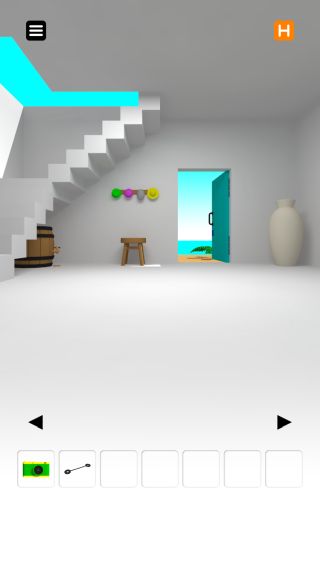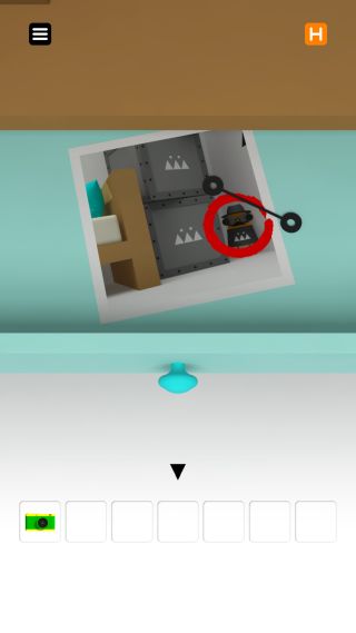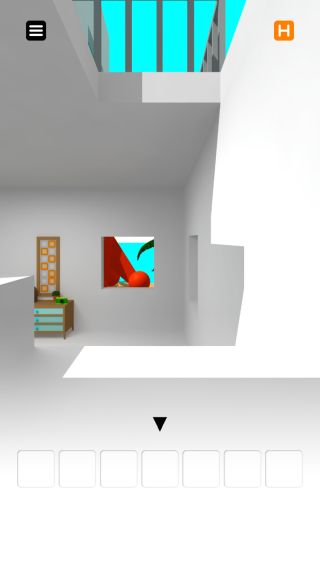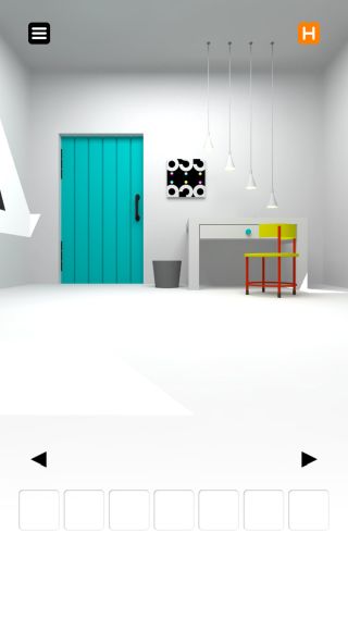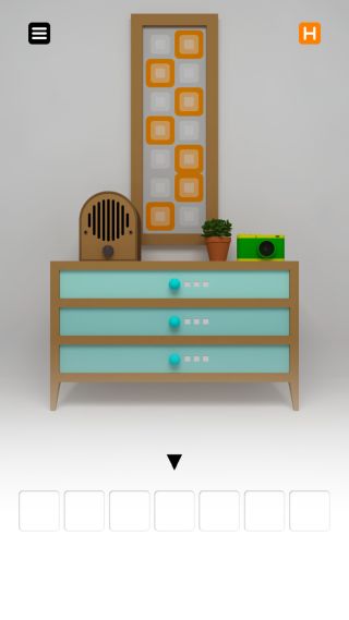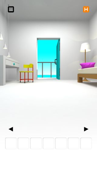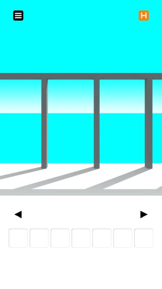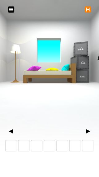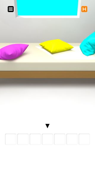 左に移動して、3色のクッションの並び『紫、黄、水色』を確認。