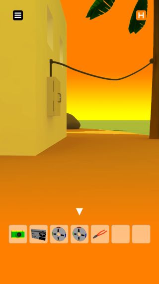 「ペンチ」で針金を切って開けて、上から「青いカギ」を入手。