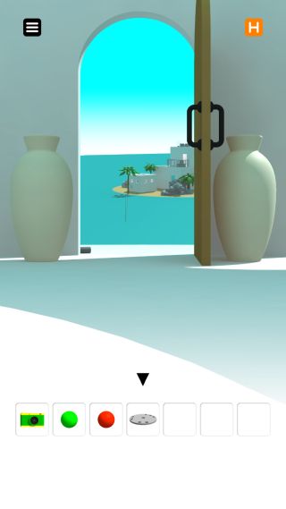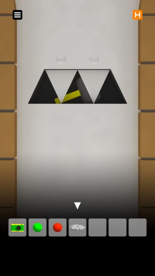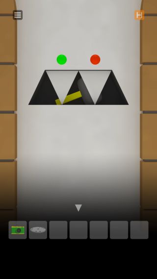 穴に「緑の玉」と「赤い玉」をはめると、右の鉄格子が外れる。