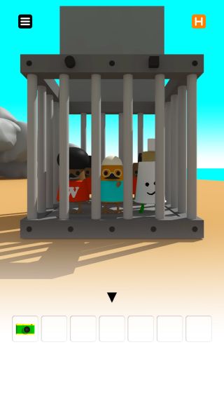 牢屋の上のボタンを『●■■●●■』の順で押す。