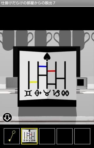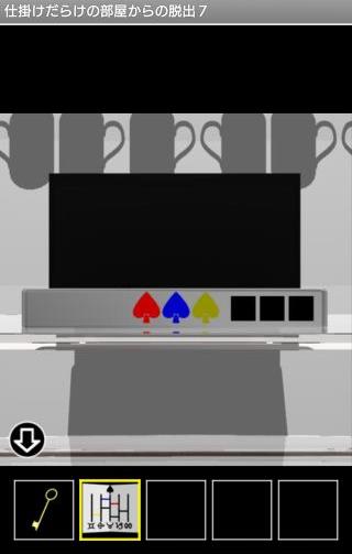 装置のスペードの色『赤青黄』を確認して、「メモ」のあみだくじを色の線の順で辿っていく。