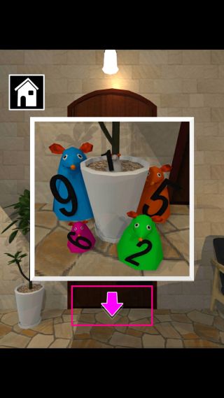 脱出ゲーム Short Rooms -ショートルームズ- 無料 2.5 評価する 送信する NAZOKOI STAGE 19 右に移動。 右奥の本を拡大して、『大→小』を確認。 左に移動して、扉を拡大。 左の植木鉢をタップして、ネズミの大きい順で『95261』を確認。 扉の装置を拡大して、『95261』を入力する。 扉を開ける。 STAGE 1 STAGE 2 STAGE 3 STAGE 4 STAGE 5 STAGE 6 STAGE 7 STAGE 8 STAGE 9 STAGE 10 STAGE 11 STAGE 12 STAGE 13 STAGE 14 STAGE 15 STAGE 16 STAGE 17 STAGE 18 STAGE 19 STAGE 20 STAGE 21 STAGE 22 STAGE 23 STAGE 24 STAGE 25 STAGE 26 STAGE 27 STAGE 28 STAGE 29 STAGE 30