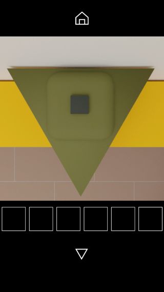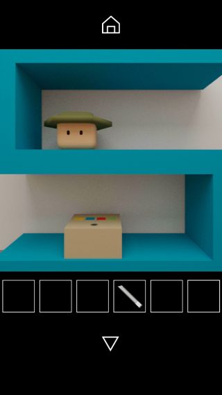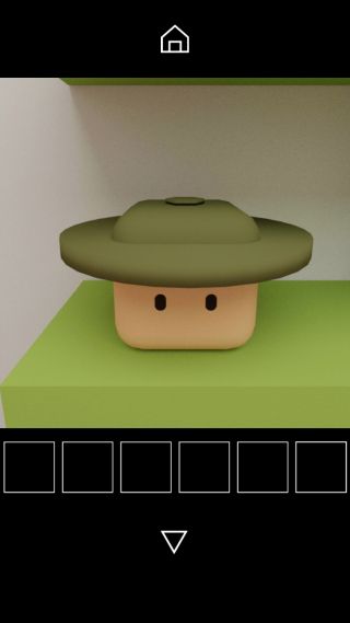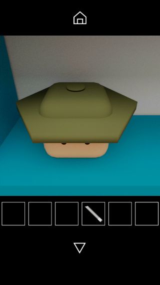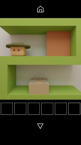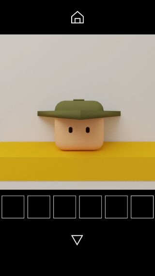 棚の上の帽子を上から調べて、帽子の形と中央の図形『三角形=四角形』を確認。