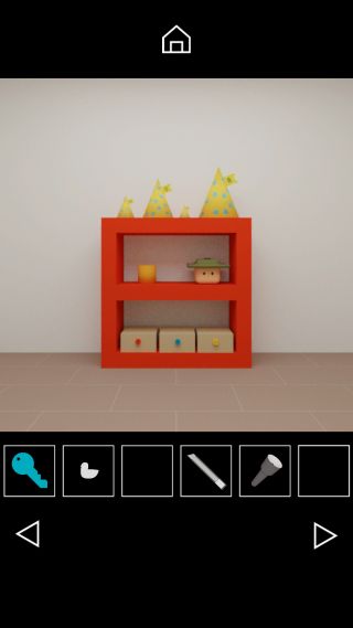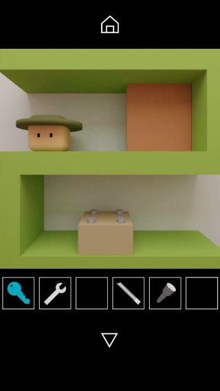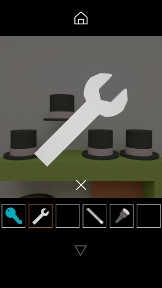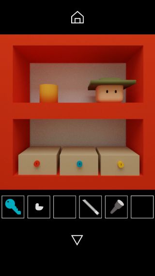 「青いカギ」で開けて、青い棚の上の帽子のつばの向き『下左上右』に合わせる。
