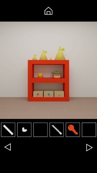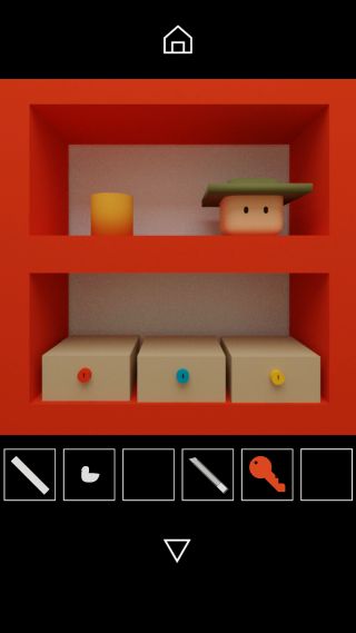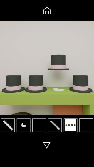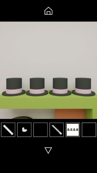 棚の上の帽子を、左から『4番目、2番目、1番目、3番目』の順で持ち上げる。