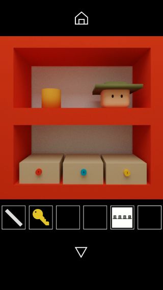 棚の黄色い鍵穴の箱を拡大。