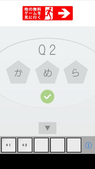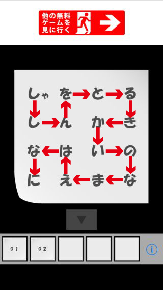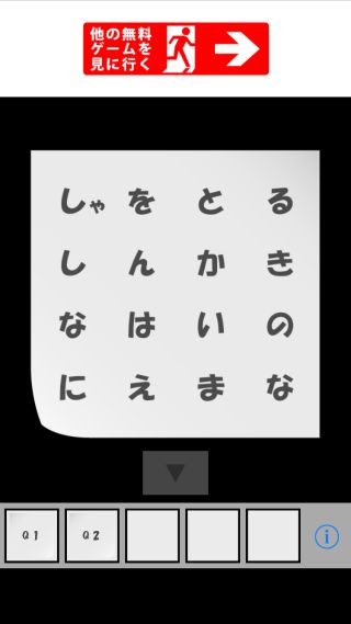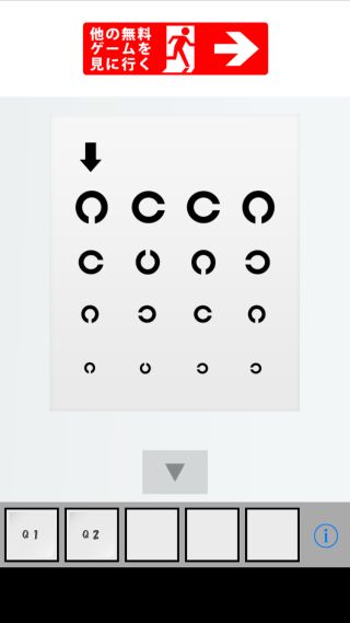 視力検査表の切れ目の方向に文字を辿っていくと、『写真を撮る機械の名前は何』となる。