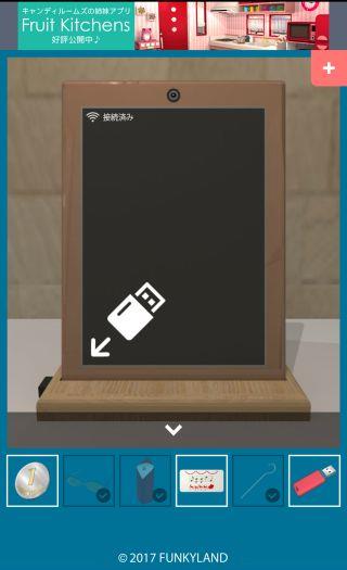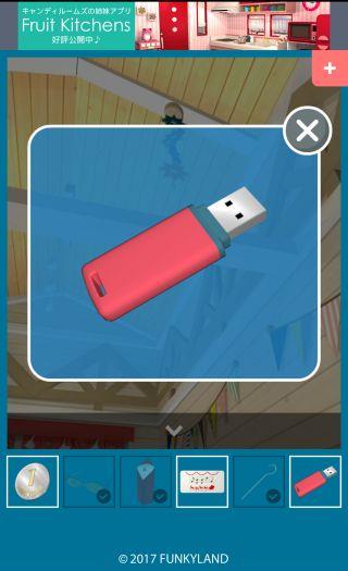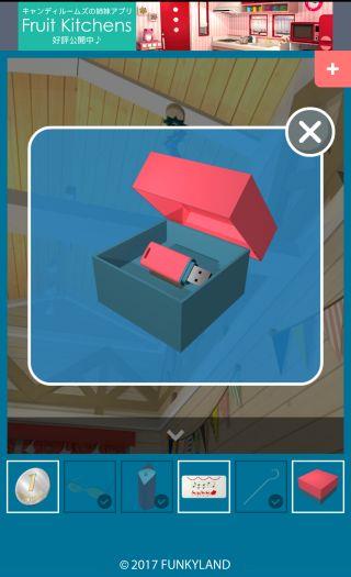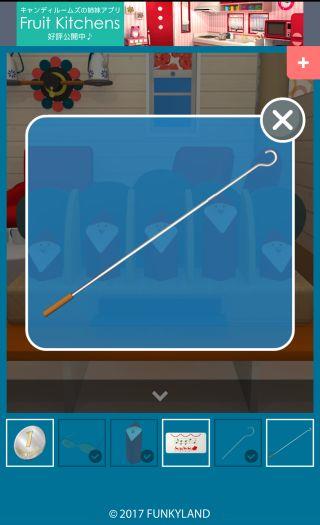 天井を調べて、「フック付き棒」を使って「小箱」を入手。