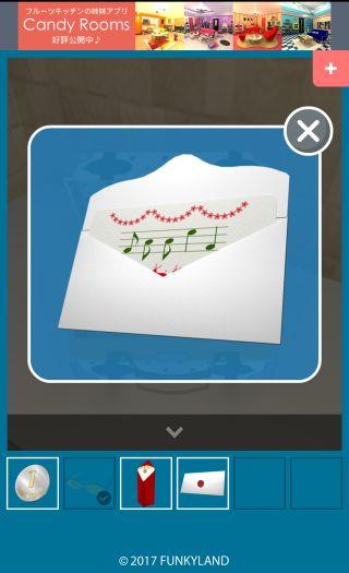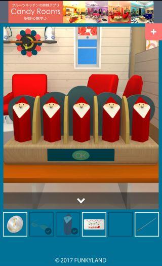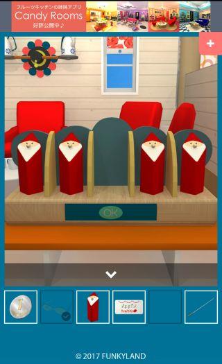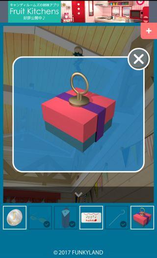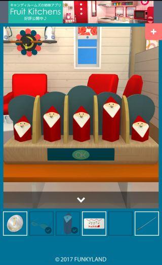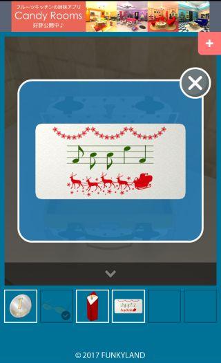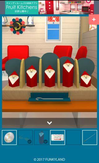部屋のスタート地点に戻って、右のサンタの装置を拡大。