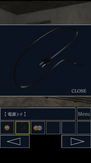 窓から出た「電源コード」を入手して、棚の間を調べる。