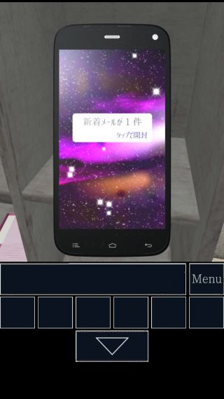 部屋の棚のスマートフォンを拡大。