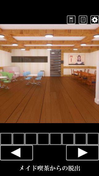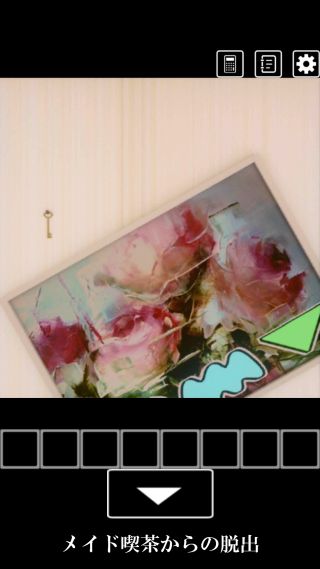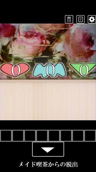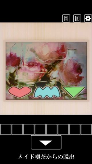 3色の椅子の背もたれの形と色を確認して、壁の額を拡大。