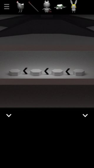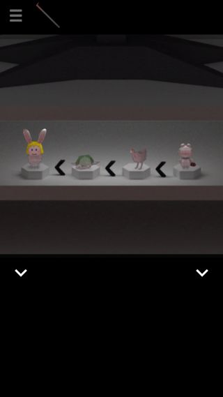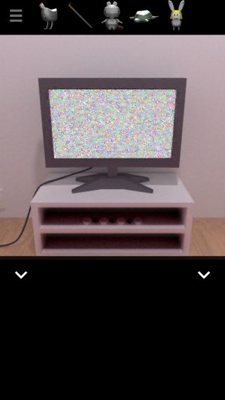 テレビ台の台座を拡大して、数の少ない順で左から「ウサギの置物」「亀の置物」「鶏の置物」「タヌキの置物」を置く。
