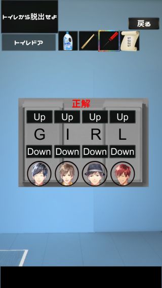 壁の装置を拡大して、『7、9、18、12』をアルファベット順に変換して『GIRL』に合わせる。