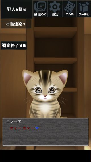2階通路の一番手前の棚を調べて、ニャー太をタップする。
