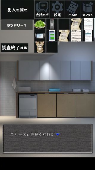 ランドリー1に移動して、左の棚を左にスワイプで動かす。