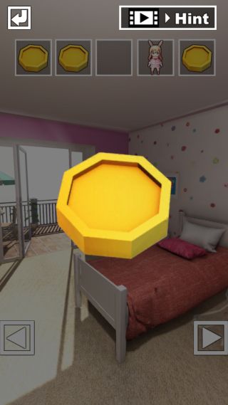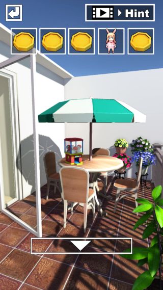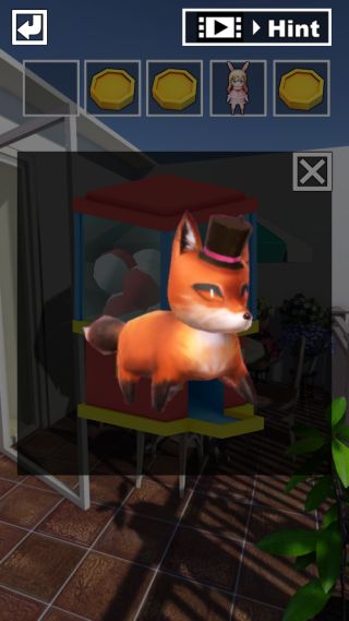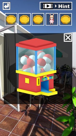 天井の隅に「ステッキ」を使って、落ちた「コイン」を入手。